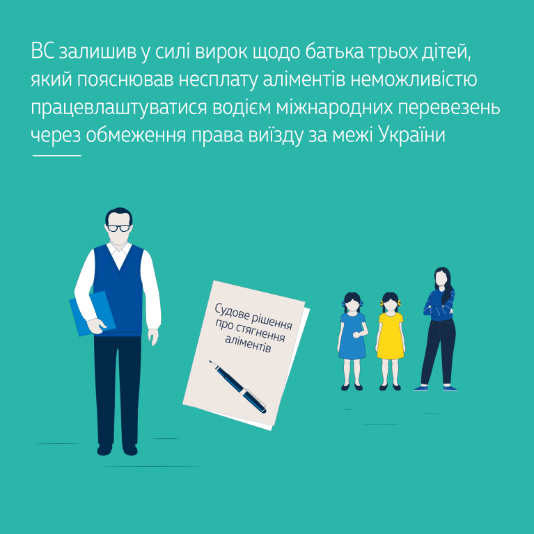 У своєму рішенні Верховний Суд зазначив, що чоловік не намагався працевлаштуватися в Україні, без поважних причин офіційно не працював, не перебував на обліку в центрі зайнятості й не надавав матеріальної допомоги на утримання дітей.