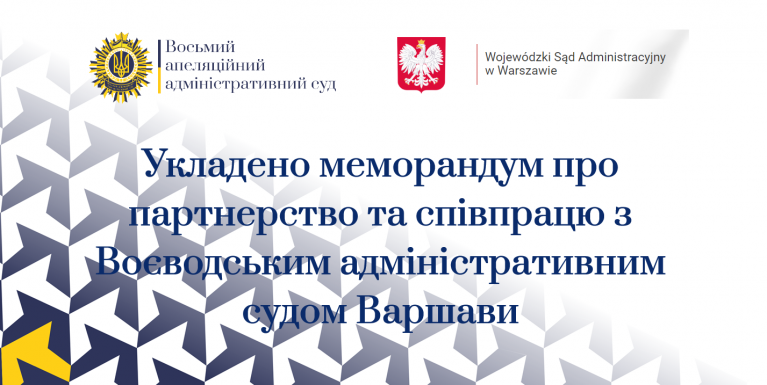24 листопада 2023 року в приміщенні Восьмого апеляційного адміністративного суду укладено Меморандум про партнерство та співпрацю між Восьмим апеляційним адміністративним судом та Воєводським адміністративним судом Варшави (Республіка Польща).