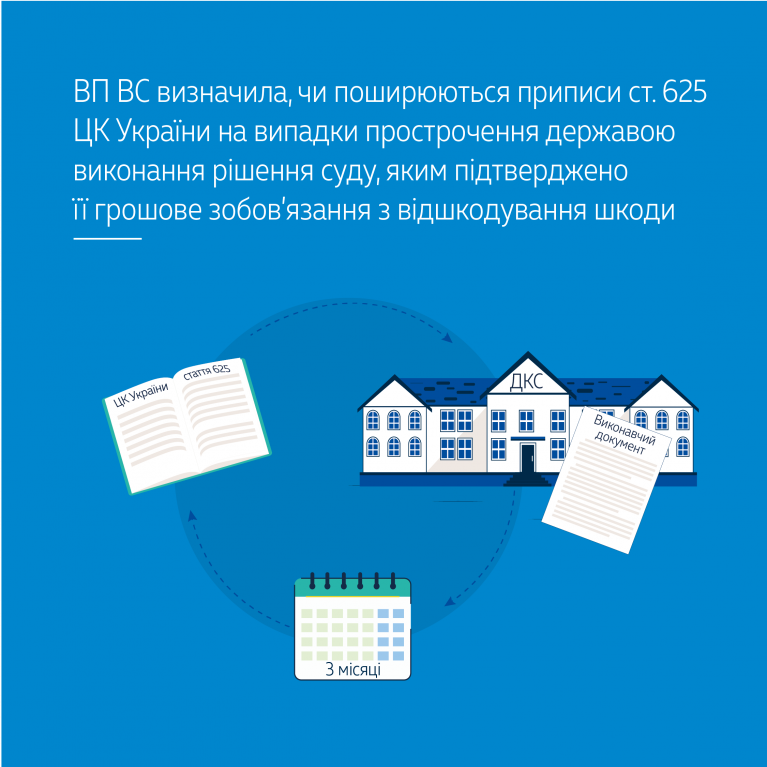 Припис ч. 2 ст. 625 ЦК України щодо юридичних наслідків прострочення виконання грошового зобов’язання боржником (зокрема, державою) поширюється на випадки порушення підтвердженого судовим рішенням грошового зобов’язання держави з відшкодування завданої нею шкоди з наступного дня після спливу трьох місяців від пред’явлення до виконання органу Державної казначейської служби України (далі – ДКС України) виконавчого документа і включно до дня, що передує дню повного виконання судового рішення.