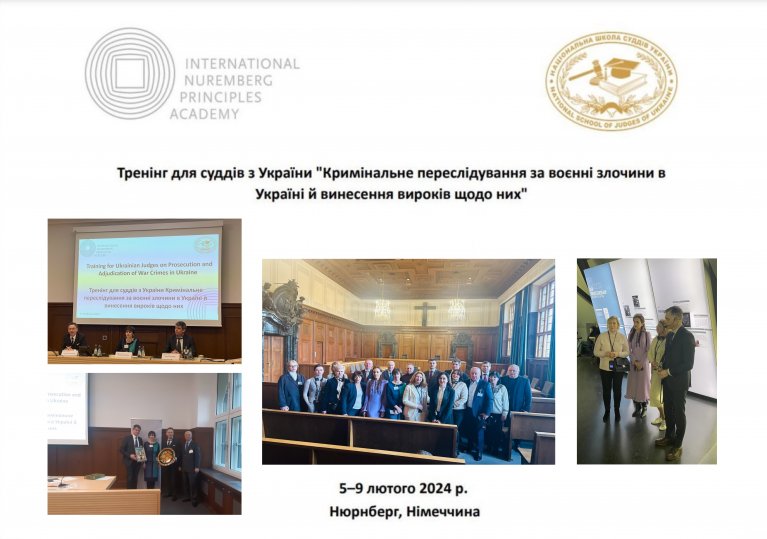 5 лютого 2024 року в місті Нюрнберг (Німеччина) розпочався навчальний візит делегації українських суддів, організований Національною школою суддів України у співпраці та на запрошення Міжнародної академії Нюрнберзьких принципів.