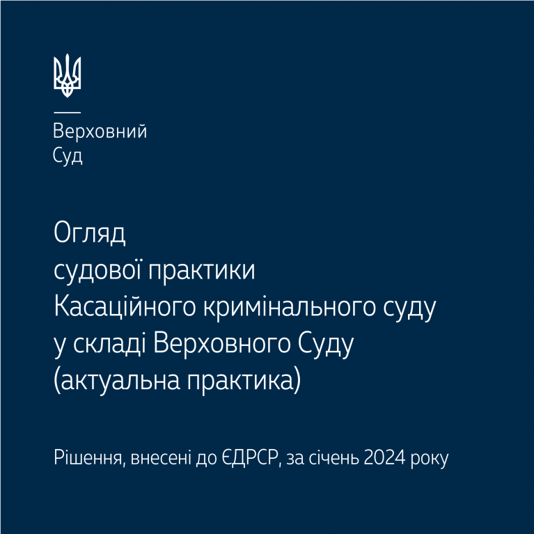 До вашої уваги – огляд актуальної судової практики Касаційного кримінального суду у складі Верховного Суду – https://supreme.court.gov.ua/userfiles/media/new_folder_for_uploads/supreme/ogliady/Oglyad_KKS_01_2024.pdf.