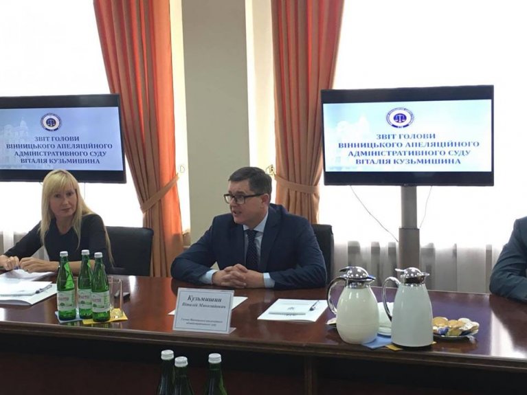 Сьогодні, 02 жовтня 2017 року, у ході загальних зборів суддів Вінницького апеляційного адміністративного суду було заслухано звіти голови суду Віталія Кузьмишина, його заступника Жанни Мельник-Томенко та керівника апарату суду Інни Грищук.