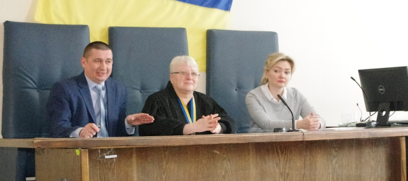В.о. голови суду привітала школярів, розкрила загальний зміст принципів судочинства, розповіла про символи судової влади та роботу працівників апарату суду.