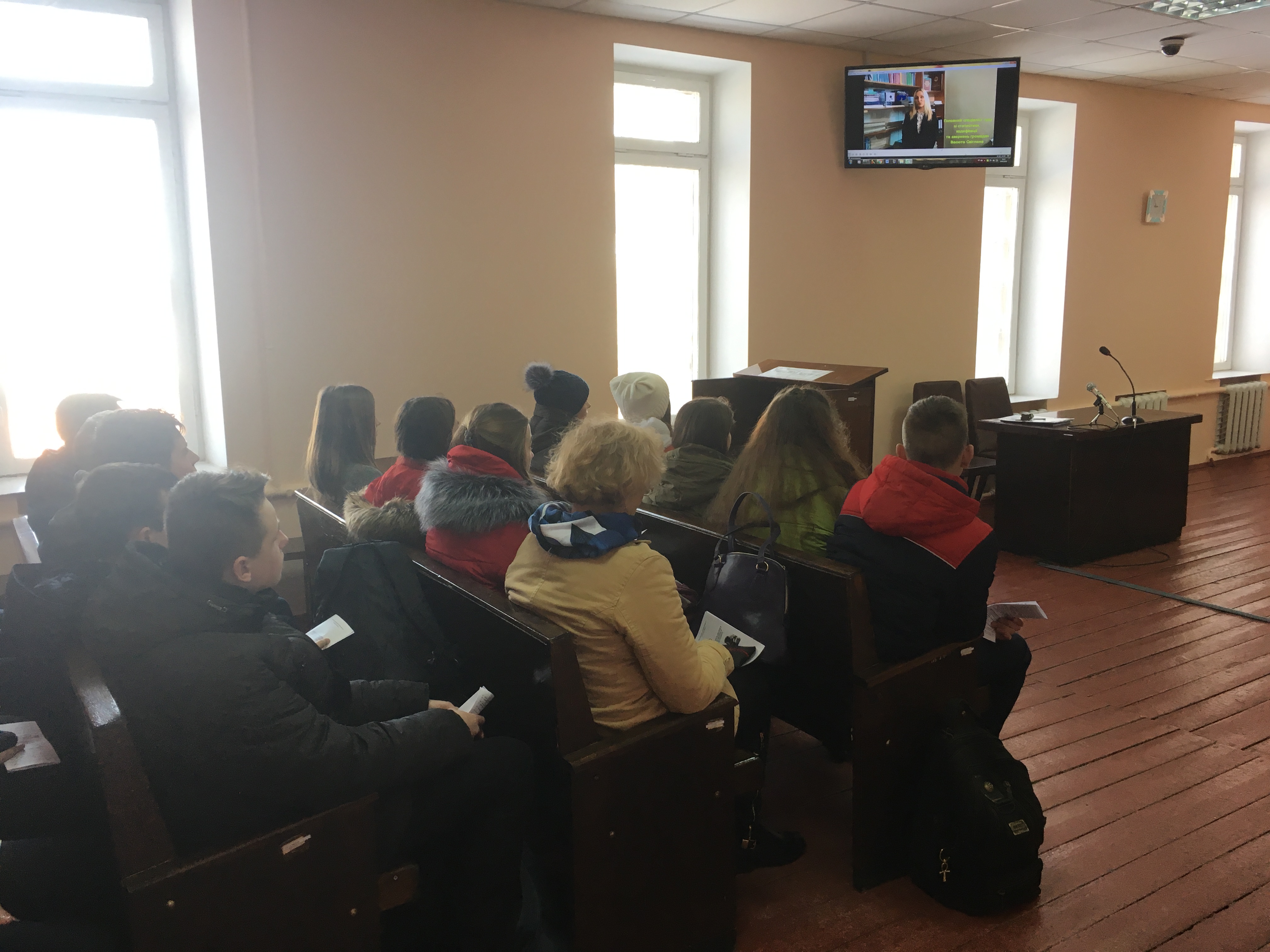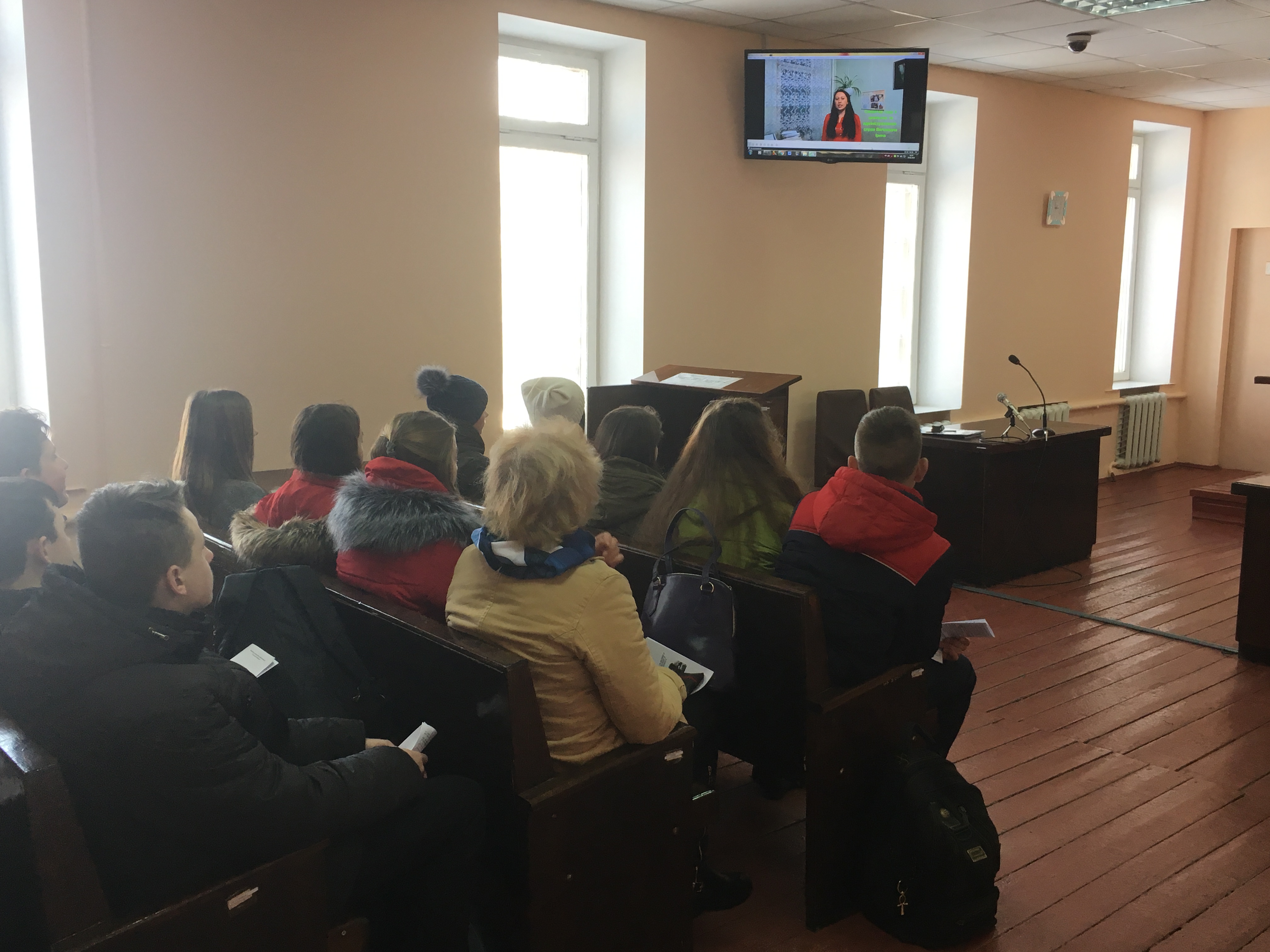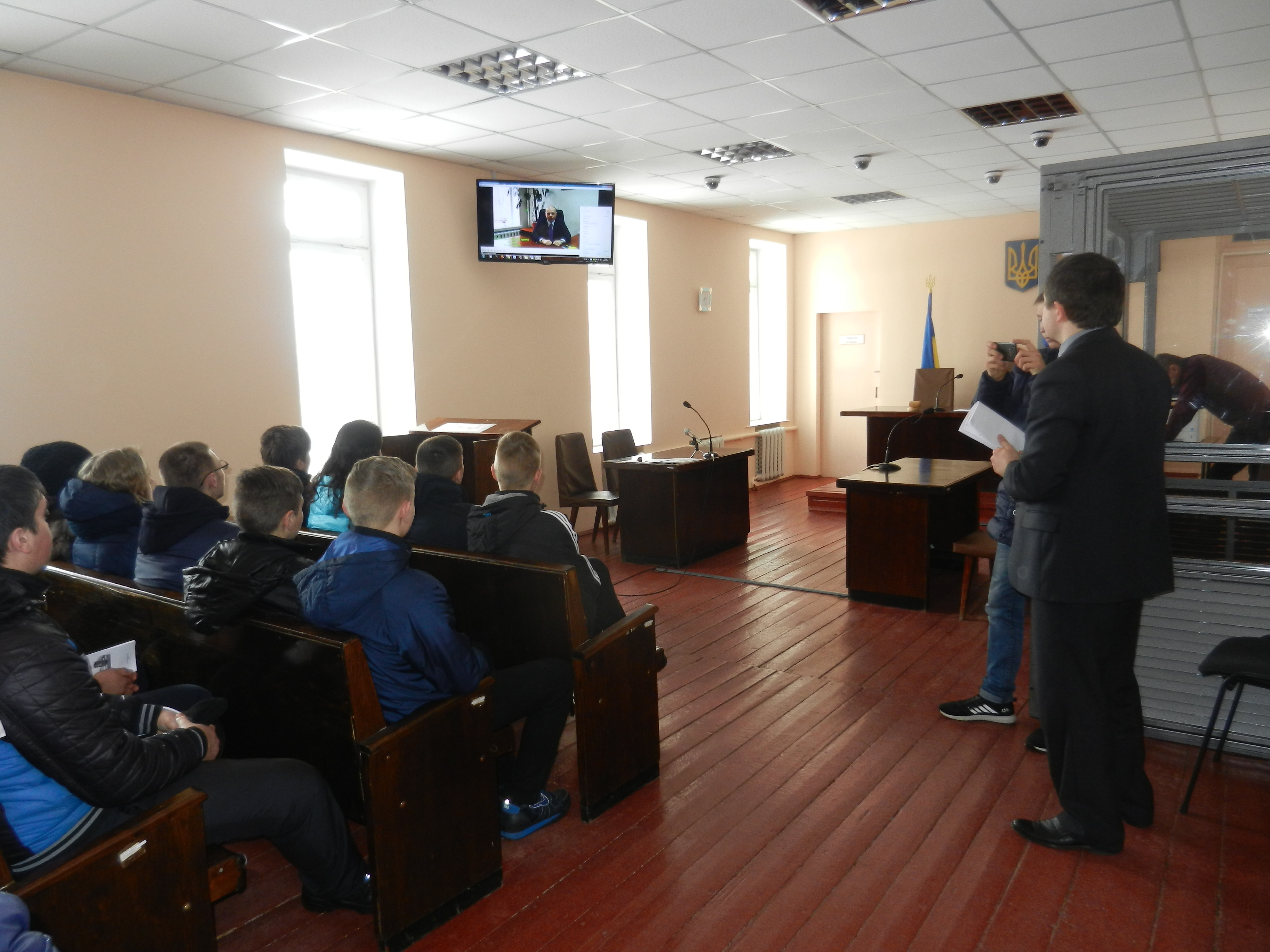 Захід проводився по попередньо розробленому плану, який викликав неабияку цікавість в учнів. Спочатку суддя-спікер Бутенко Д.В. виступив із лекцією щодо умов і порядку судового захисту прав підлітків, останнім доведено до відома загальні правила поведінки в суді, умови та порядок допиту в суді неповнолітніх свідків, роз’яснено як надаються пояснення і показання неповнолітніми особами під час судових засідань, які процесуальні гарантії передбачені у процесуальному законодавстві для забезпечення права на захист у кримінальних провадженнях та у справах про адміністративні правопорушення.